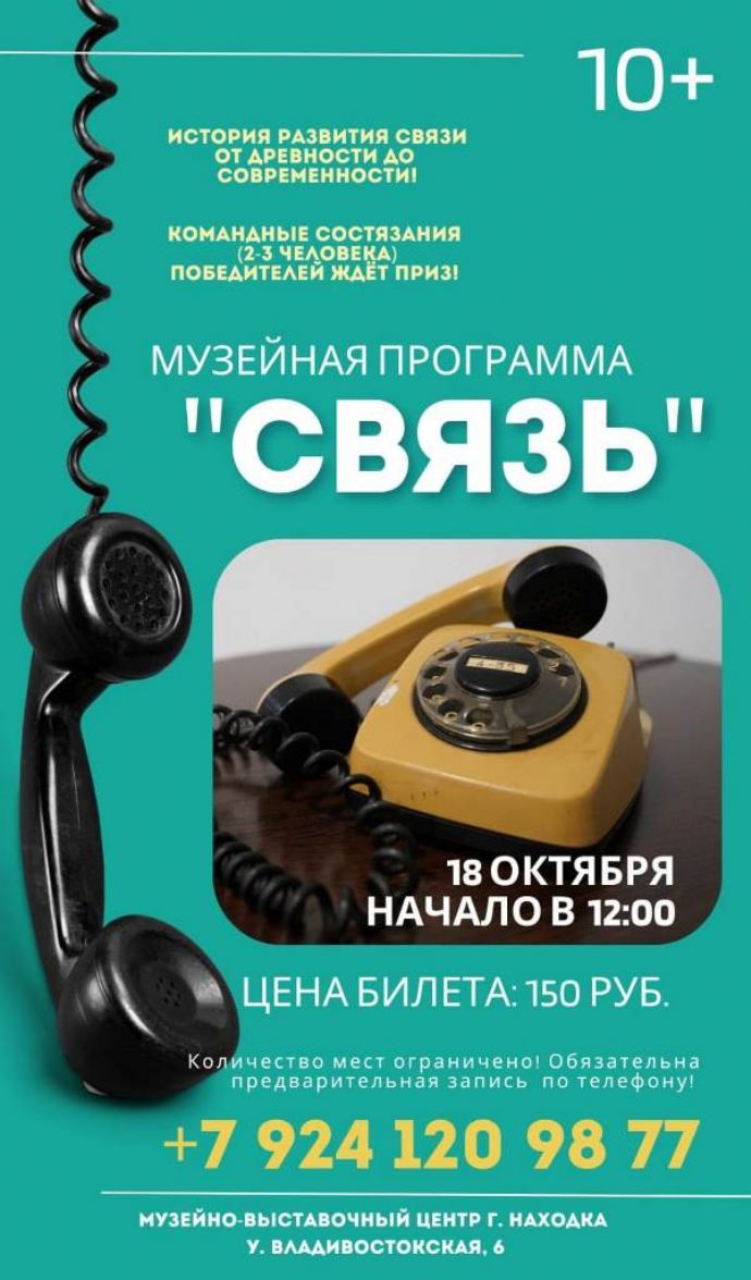 Музейно-выставочный центр г. Находка приглашает детей (от 10 лет) и взрослых на интерактивную образовательную программу «Связь», которая состоится 18 октября, в 12:00.