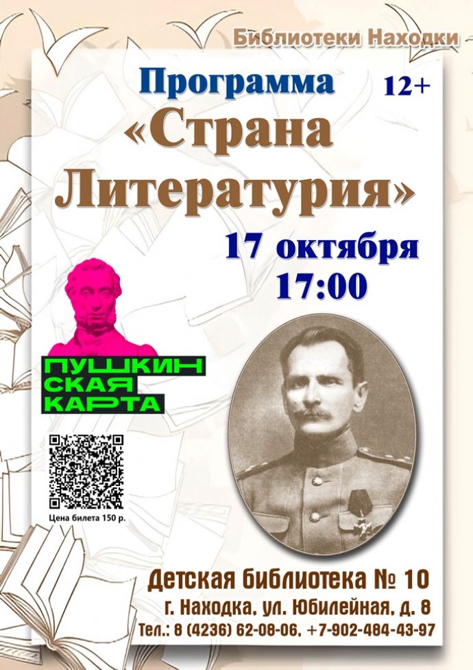 Коллектив детской библиотеки № 10 приглашает всех желающих на познавательную программу «Страна Литературия», которая состоится 17 октября в 17:00. Мероприятие будет посвящено удивительной личности – географу, этнографу и неутомимому исследователю Дальнего Востока Владимиру Клавдиевичу Арсеньеву.