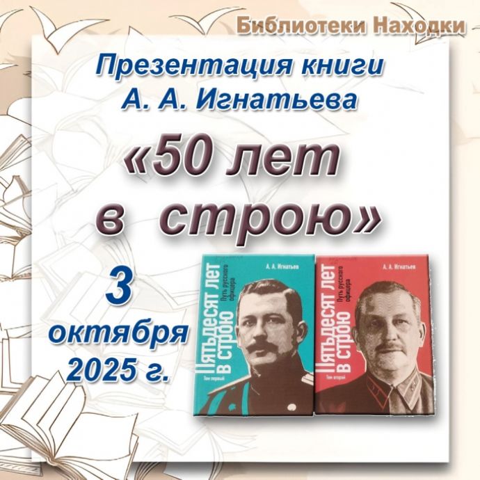 Библиотеки Находки 3 октября приглашают на презентацию книги Алексея Игнатьева «50 лет в строю» в рамках краевого проекта «Как пройти в библиотеку!?!».