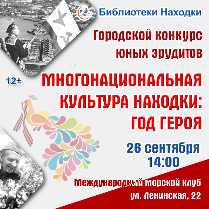 Управление культуры администрации Находкинского городского округа информирует о проведении ежегодного городского конкурса юных эрудитов «Многонациональная культура Находки: год героя». Мероприятие состоится 26 сентября 2025 года.