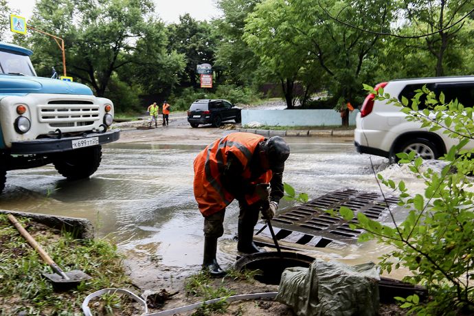 В Находке зафиксировано 102 мм осадков. Это означает, что за ночь в нашем городе выпала почти месячная норма. Наиболее серьезно последствия удара стихии проявились в микрорайоне Врангель. Селевые потоки, сошедшие с сопок, заблокировали центральную автомагистраль на подъездах к населенному пункту массой грунта и камней. В настоящий момент дорожные службы в усиленном составе ведут работы по расчистке трассы.