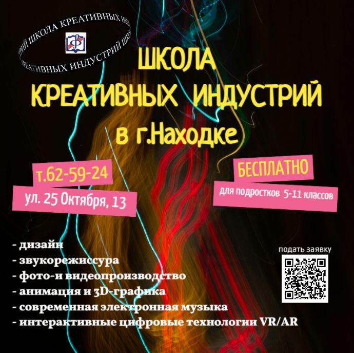 На базе филиала Приморского краевого колледжа искусств в Находке (ул. 25 Октября, 13) начинается набор в новую государственную Школу креативных индустрий (ШКИ). Приглашаются подростки 5-11 классов. Это уникальная возможность для родителей организовать содержательный досуг детей и помочь им с выбором будущей профессии в востребованных креативных сферах. Обучение в Школе полностью бесплатное и рассчитано на 2 года. Старт занятий – 1 сентября 2025 года.