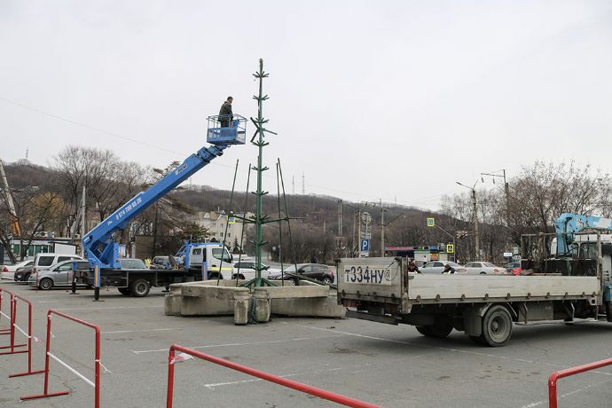Находку начали украшать к Новому году. Так, у входа на аллею улицы Ленинской монтируют новогоднюю красавицу. В этом году сборка конструкции стартовала раньше обычного.