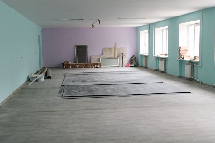 По информации подрядчика на объекте задействовано 17 специалистов, которые ведут работы параллельно в нескольких зонах. На данный момент полностью закончены работы в цокольной части, а также на втором и третьем этажах. На четвертом этаже установлены межкомнатные двери, стены выровнены и ждут покраски. Завершающими штрихами здесь станут укладка линолеума и монтаж плинтусов. На пятом этаже продолжаются отделочные работы: подготавливаются поверхности под покраску и монтируются дверные блоки.