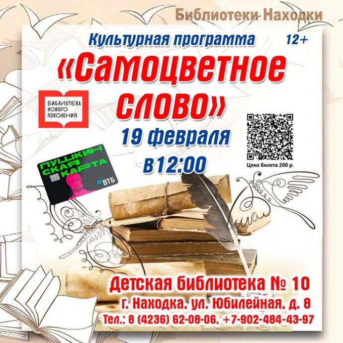 Детская библиотека № 10 (ул. Юбилейная, 8) приглашает жителей и гостей Находки на культурную программу «Самоцветное слово». Мероприятие состоится 19 февраля, начало в 12:00.