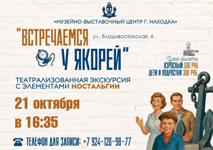21 октября, в 16:35, в Музейно-выставочном центре Находки (ул. Владивостокская, 6) состоится спектакль «Встречаемся у якорей».