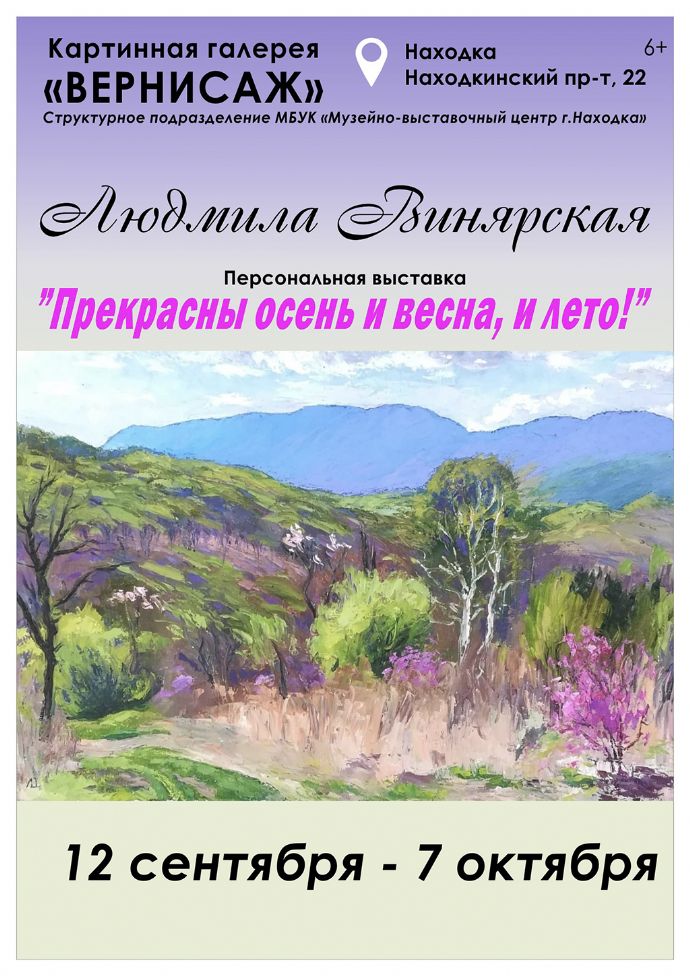 В картинной галерее «Вернисаж» города Находки открывается персональная выставка Людмилы Винярской под названием «Прекрасны осень и весна, и лето!».