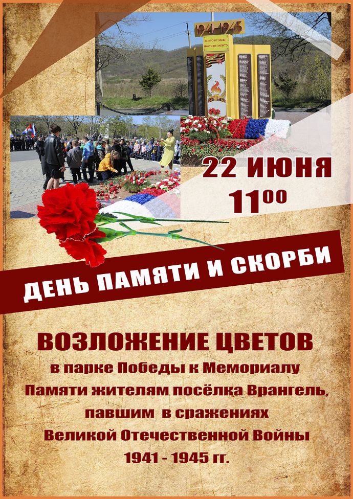 Возложение цветов в парке Победы к Мемориалу Памяти жителям поселка Врангель, павшим в сражениях Великой Отечественной Войны 1941-1945 гг.