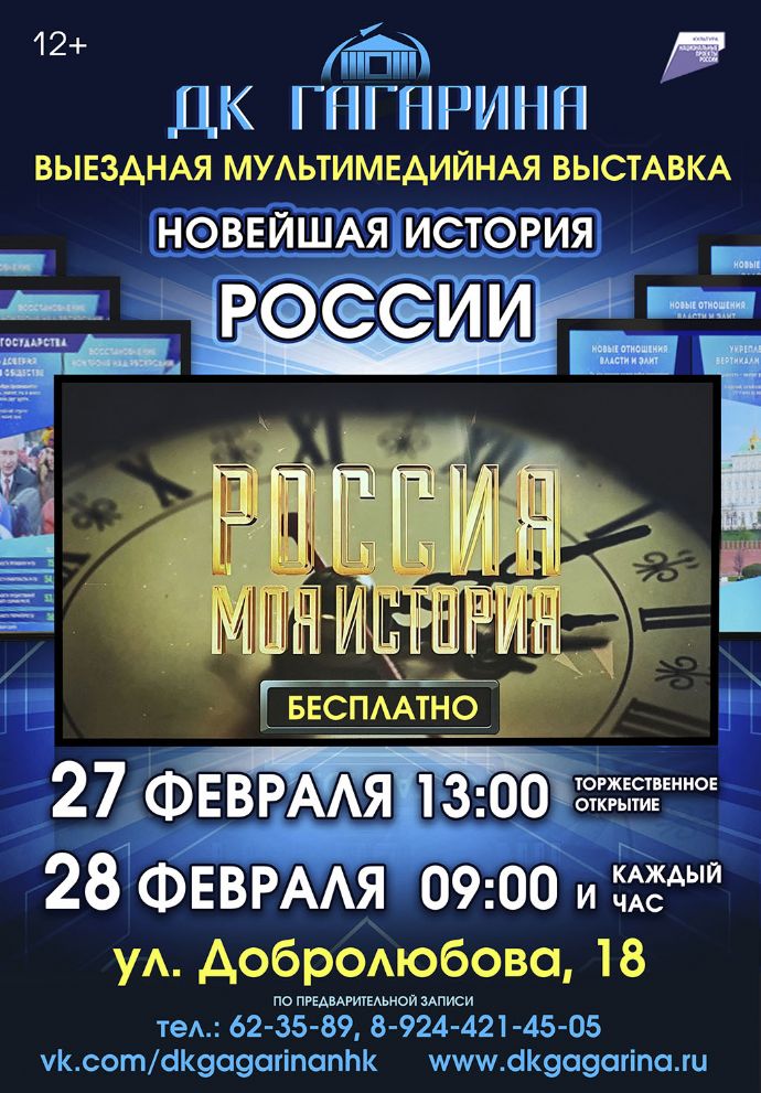 Торжественное открытие выездной мультимедийной выставки "Новейшая история России" от парка "Россия-Моя история" г. Владивосток состоится 27 февраля в 13:00 в Доме культуры им. Ю. Гагарина. 28 февраля с 9:00 и каждый час жителей и гостей города приглашают посетить экспозицию.
