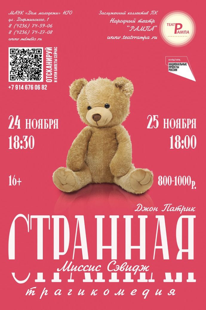 Трагикомедия "Странная Миссис Сэвидж" в Доме молодежи