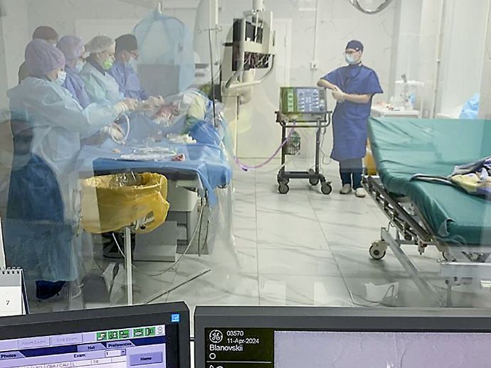 В Находкинской больнице за две недели поставили на ноги участника специальной военной операции, который перенес клиническую смерть при обширном инфаркте миокарда. Спасти жизнь пациента и сохранить ее качество удалось благодаря мастерству медиков и современному оснащению медучреждения по нацпроекту «Продолжительная и активная жизнь». Мужчина средних лет прибыл домой в отпуск. В один из дней он почувствовал давящую боль в груди и решил заехать на «скорую».