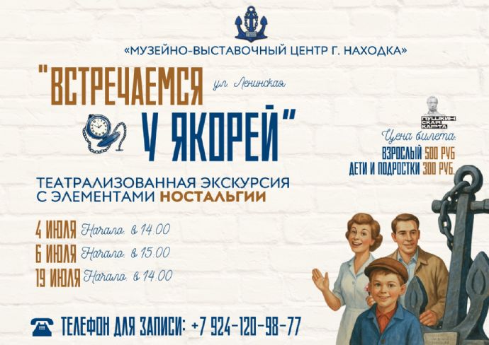 Музейно-выставочный центр Находки приглашает жителей города принять участие в проектном семинаре «Встречаемся у якорей», который пройдет 2, 3, 4 июля 2025 года с 10.00 до 17.00.